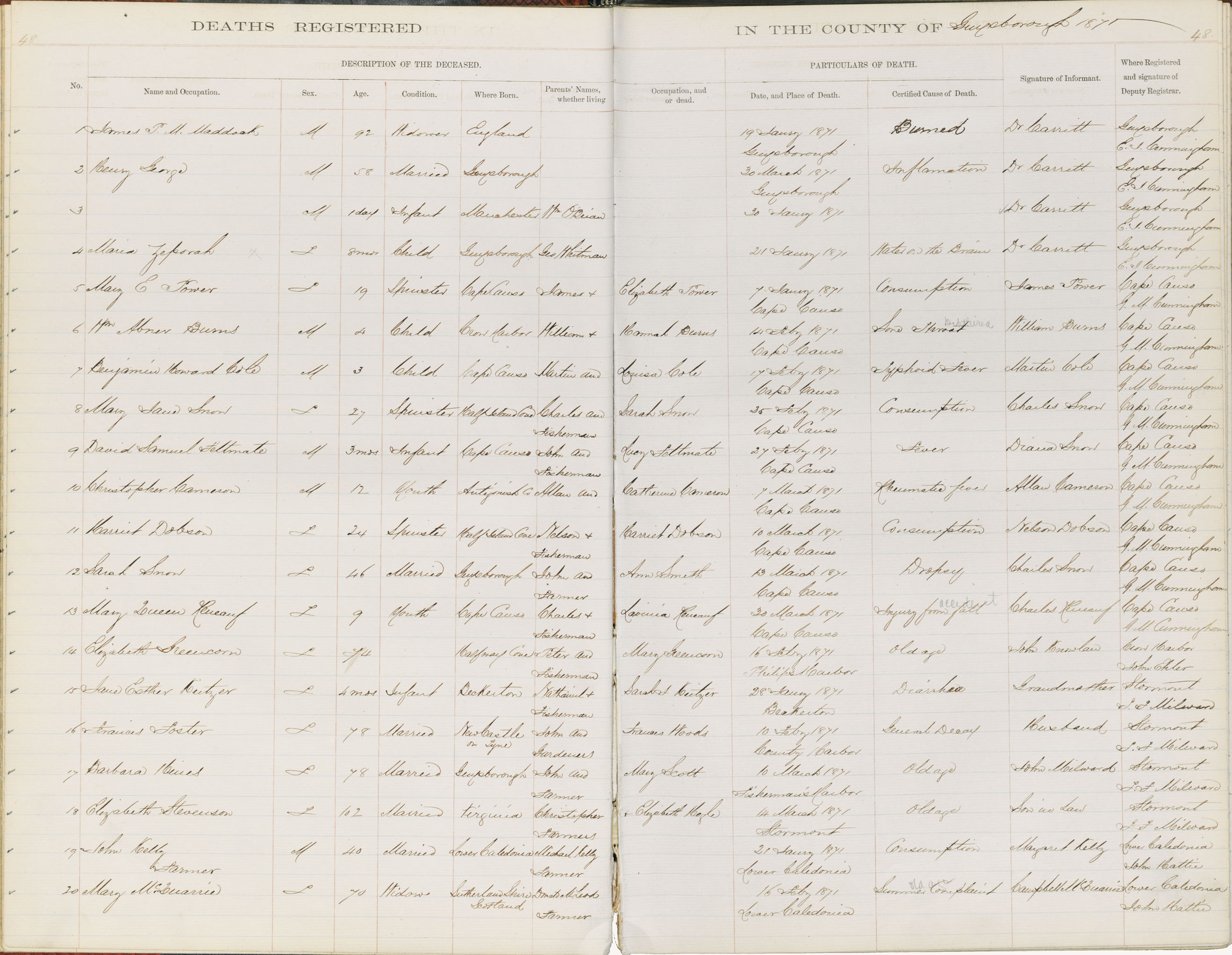 Death Registration: Year: 1871 book: 1807 page: 48 number: 1