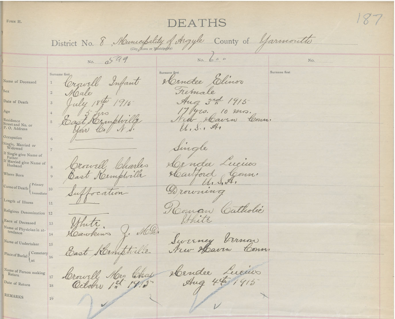 Death Registration: Year: 1915 book: 50 page: 187 number: 600