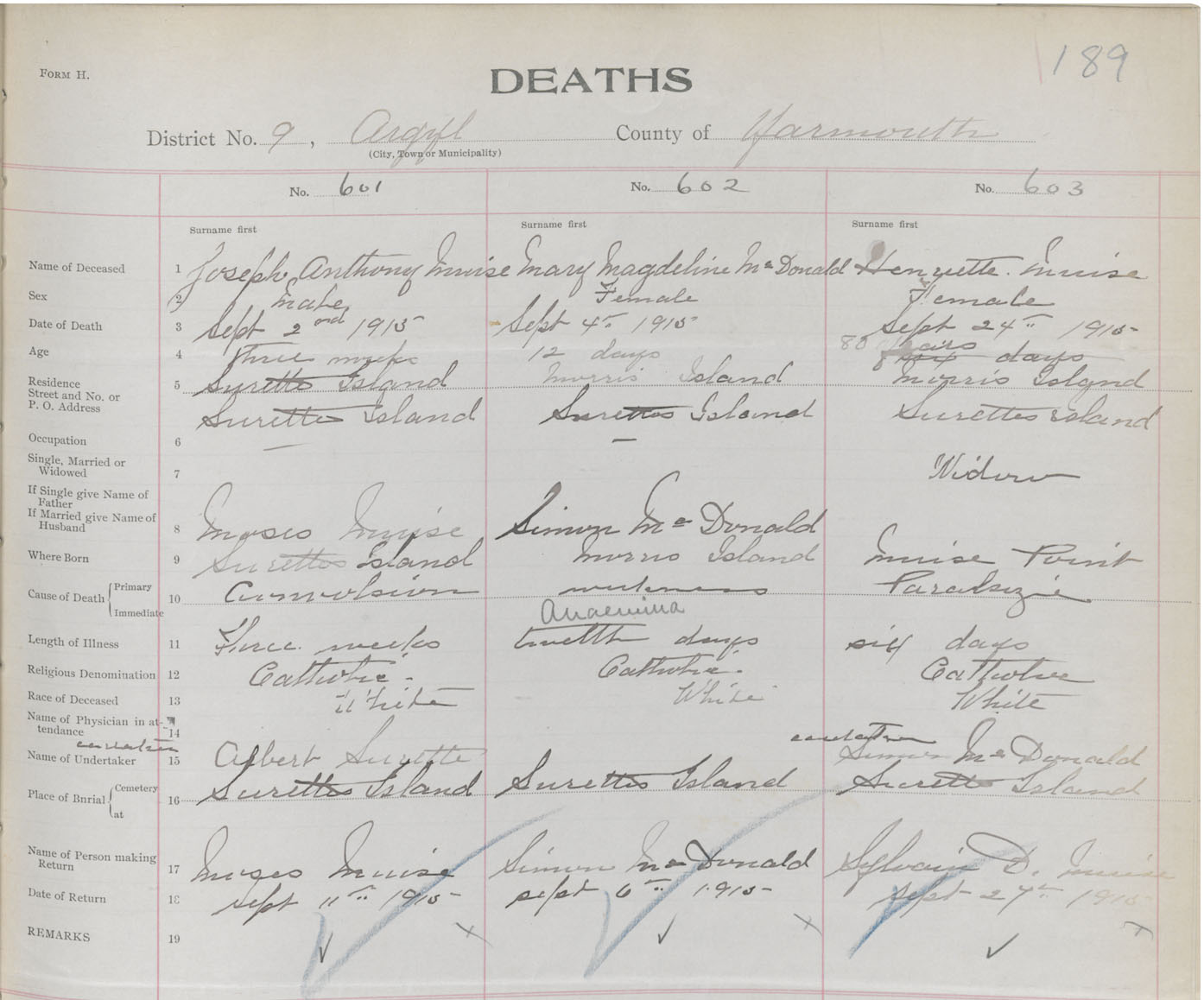 Death Registration: Year: 1915 book: 50 page: 189 number: 603