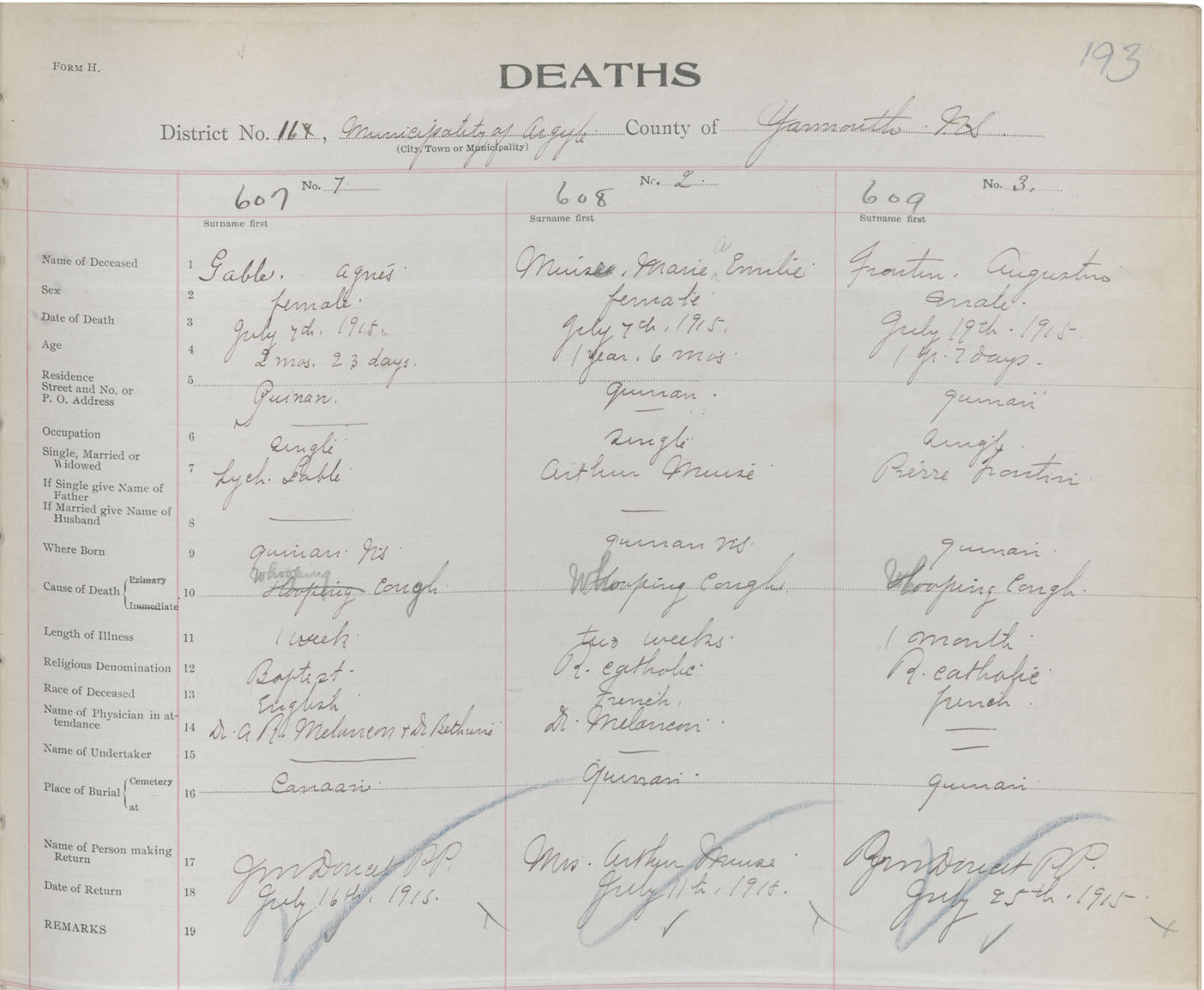 Death Registration: Year: 1915 book: 50 page: 193 number: 609