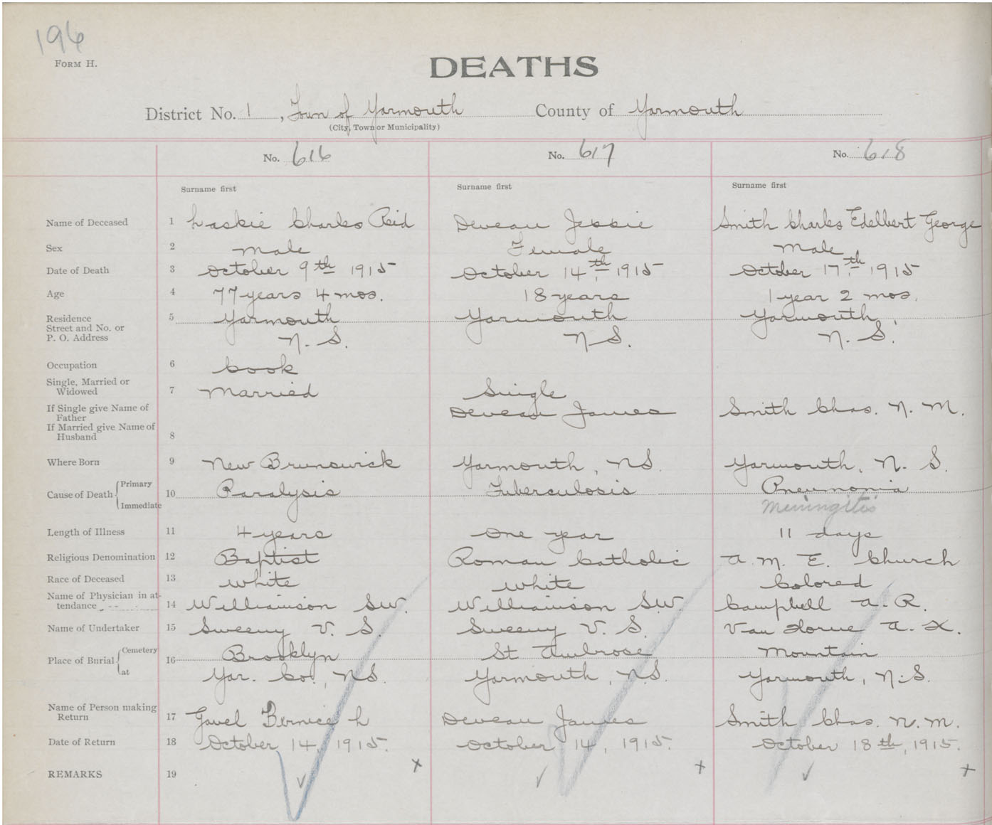 Death Registration: Year: 1915 book: 50 page: 196 number: 618