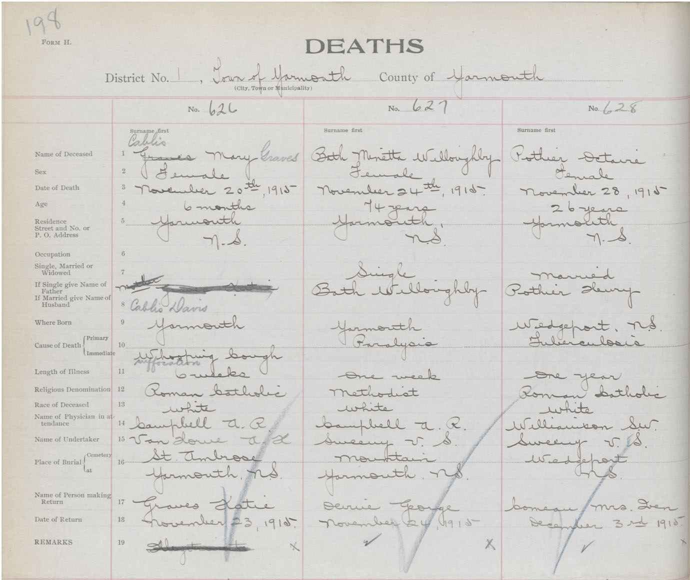 Death Registration: Year: 1915 book: 50 page: 198 number: 628