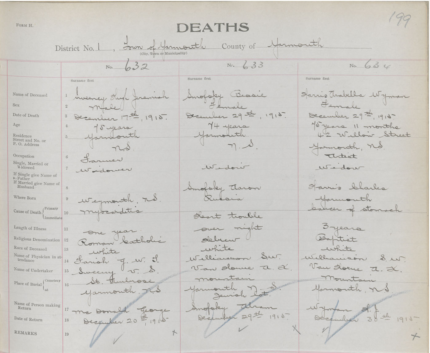 Death Registration: Year: 1915 book: 50 page: 199 number: 634