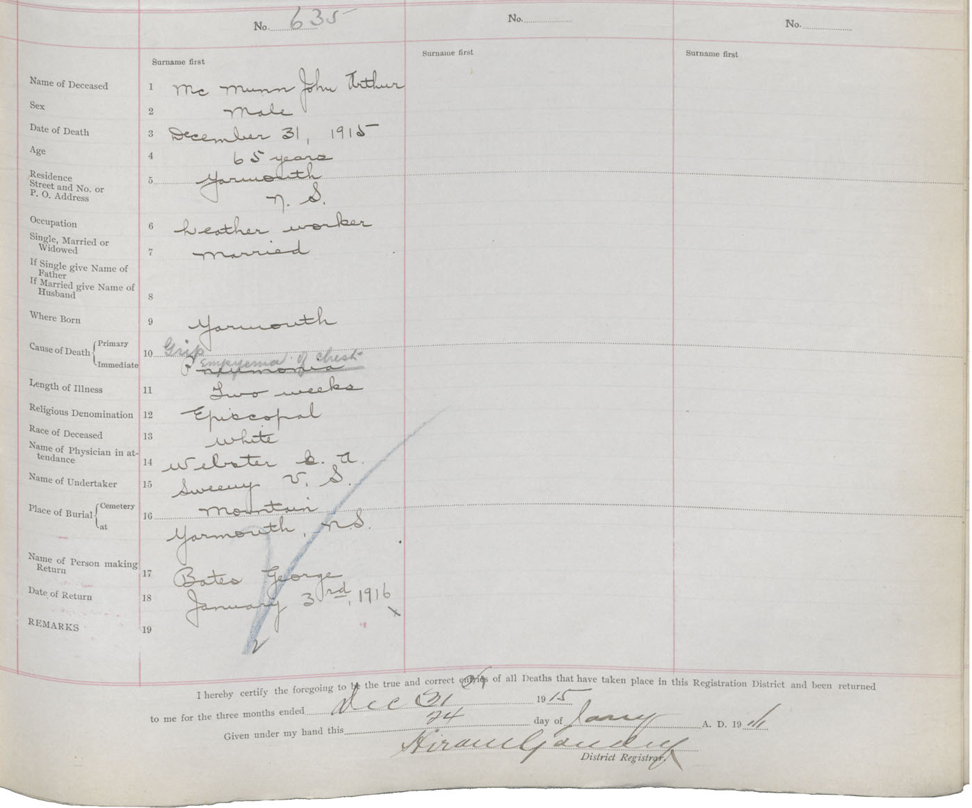 Death Registration: Year: 1915 book: 50 page: 199 number: 635