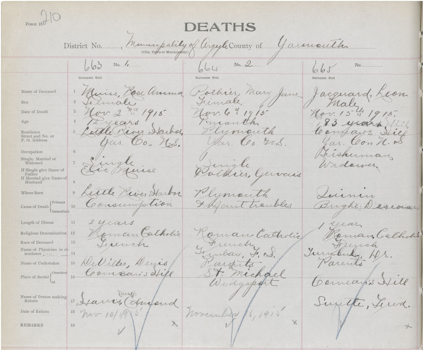 Death Registration: Year: 1915 book: 50 page: 210 number: 665
