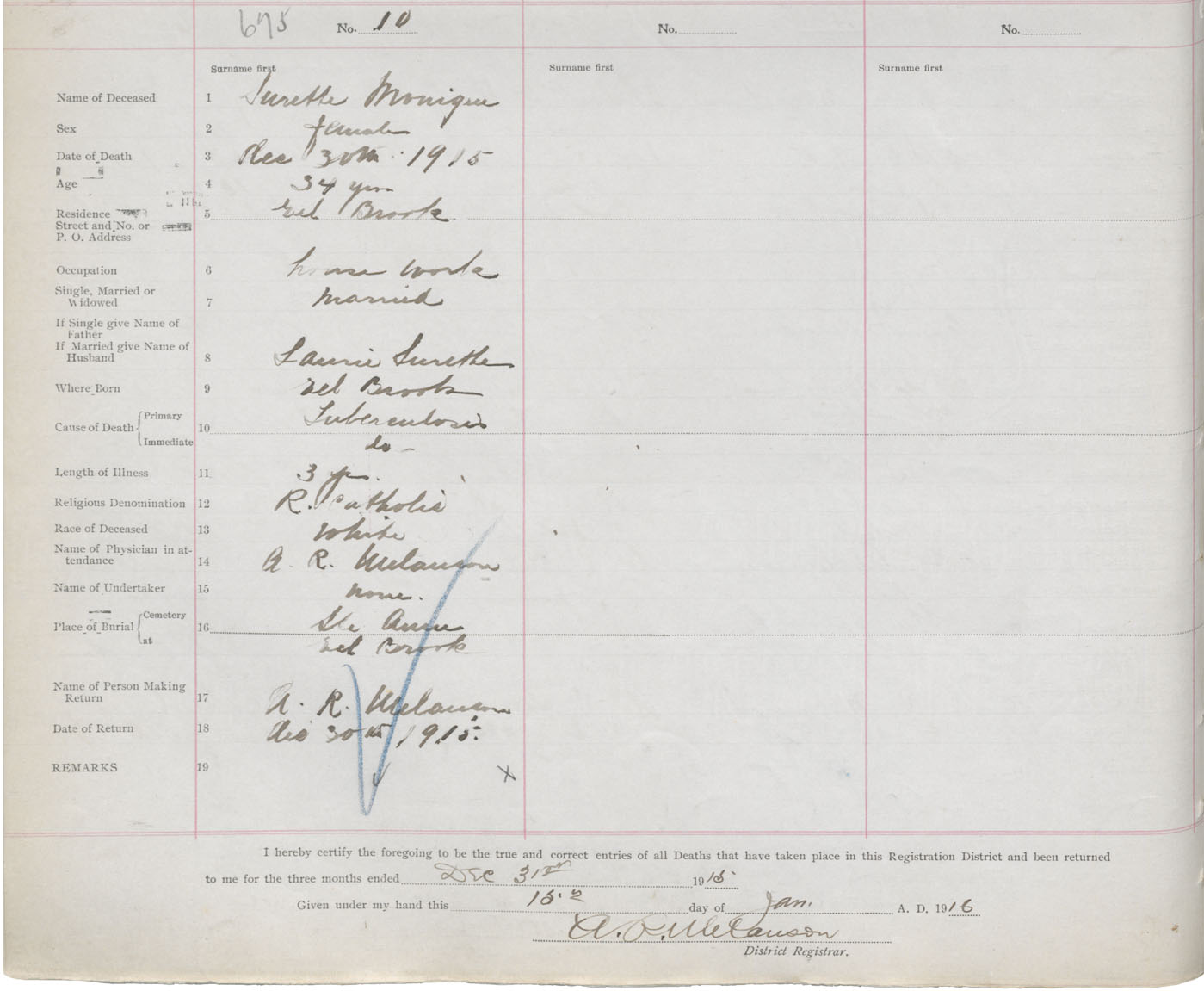 Death Registration: Year: 1915 book: 50 page: 212 number: 675
