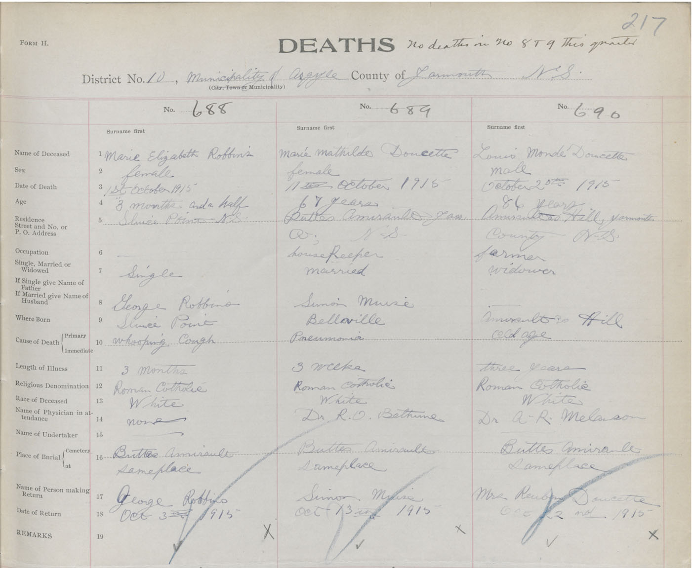 Death Registration: Year: 1915 book: 50 page: 217 number: 690