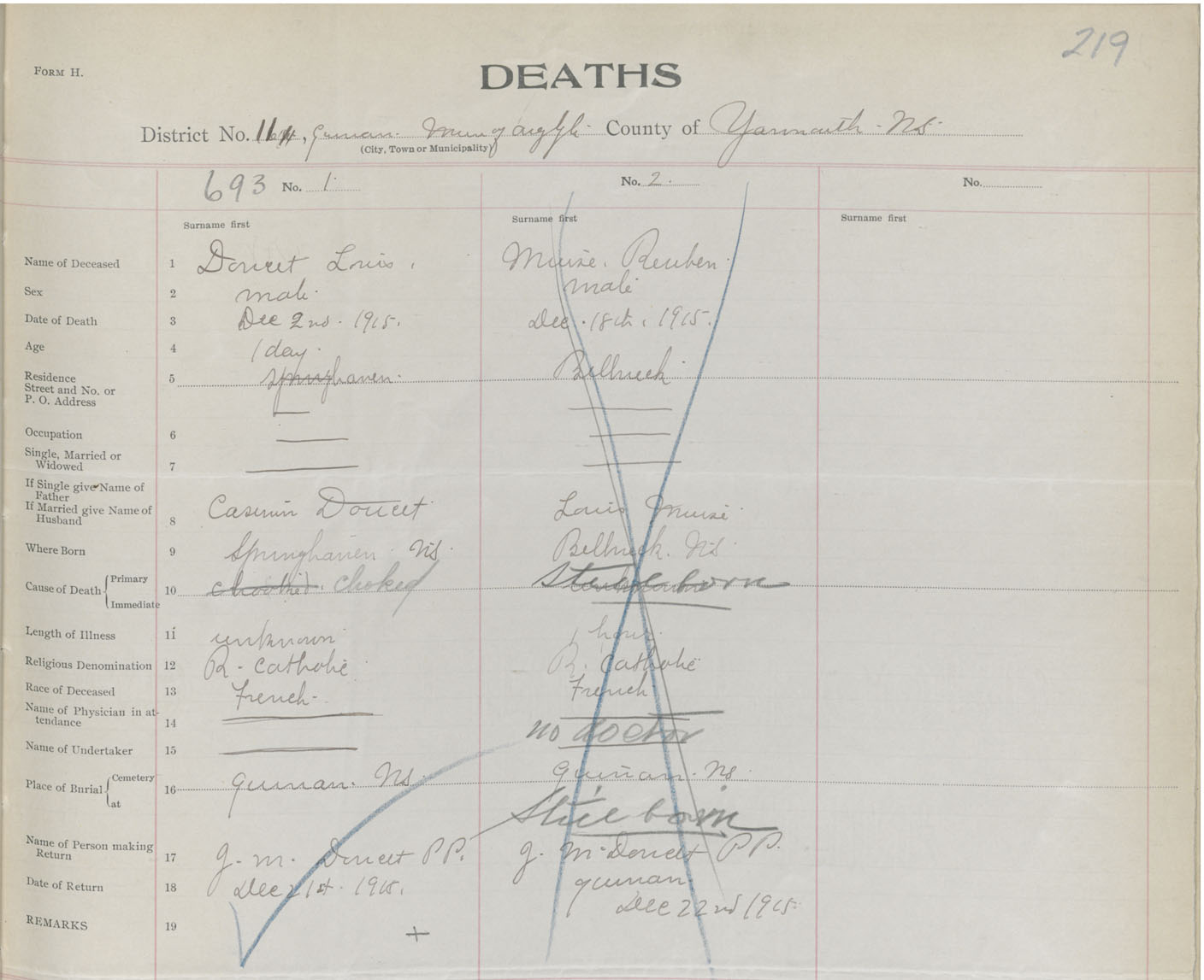 Death Registration: Year: 1915 book: 50 page: 219 number: 693