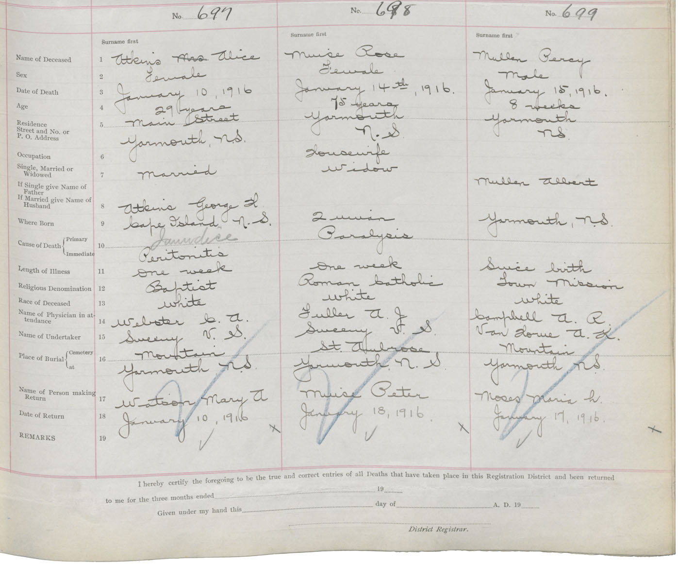 Death Registration: Year: 1916 book: 50 page: 221 number: 699