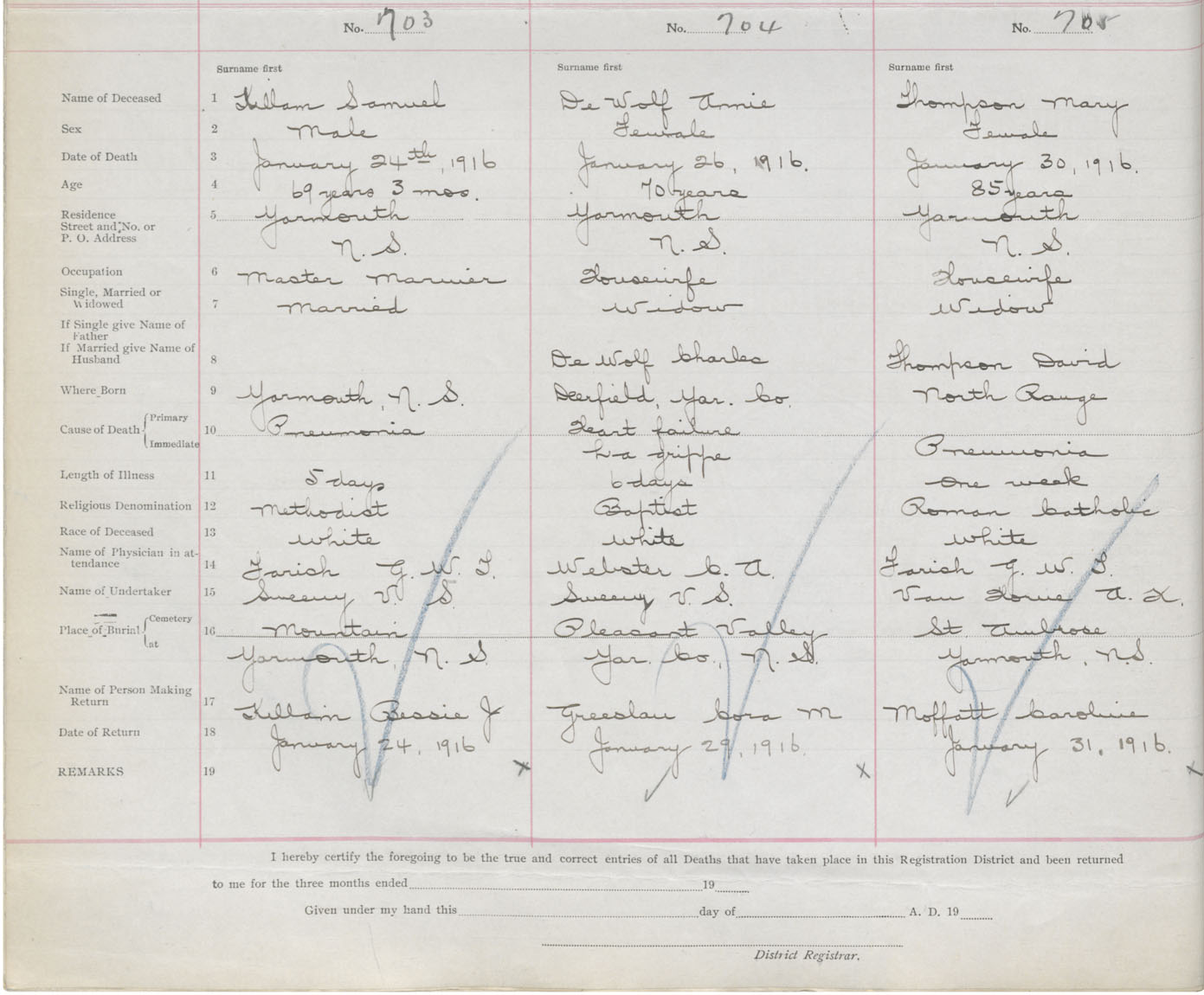 Death Registration: Year: 1916 book: 50 page: 222 number: 705