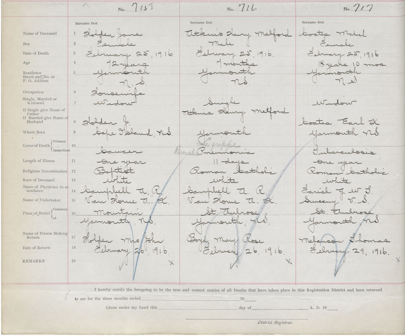 Death Registration: Year: 1916 book: 50 page: 224 number: 717