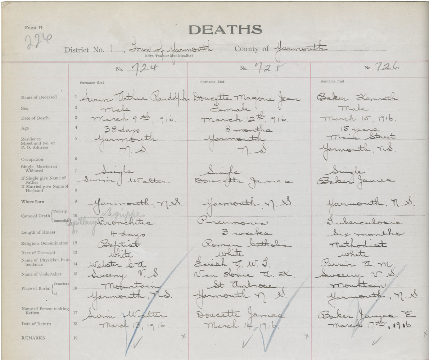 Death Registration: Year: 1916 book: 50 page: 226 number: 726