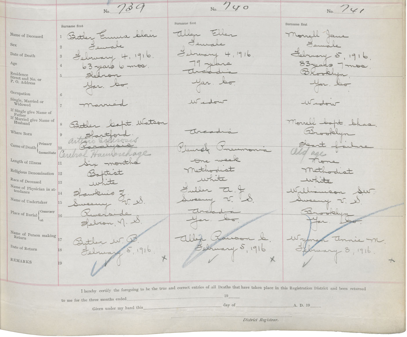 Death Registration: Year: 1916 book: 50 page: 229 number: 741