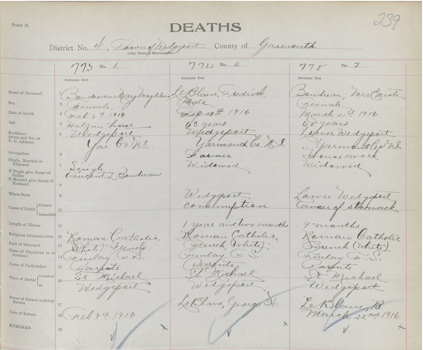 Death Registration: Year: 1916 book: 50 page: 239 number: 775
