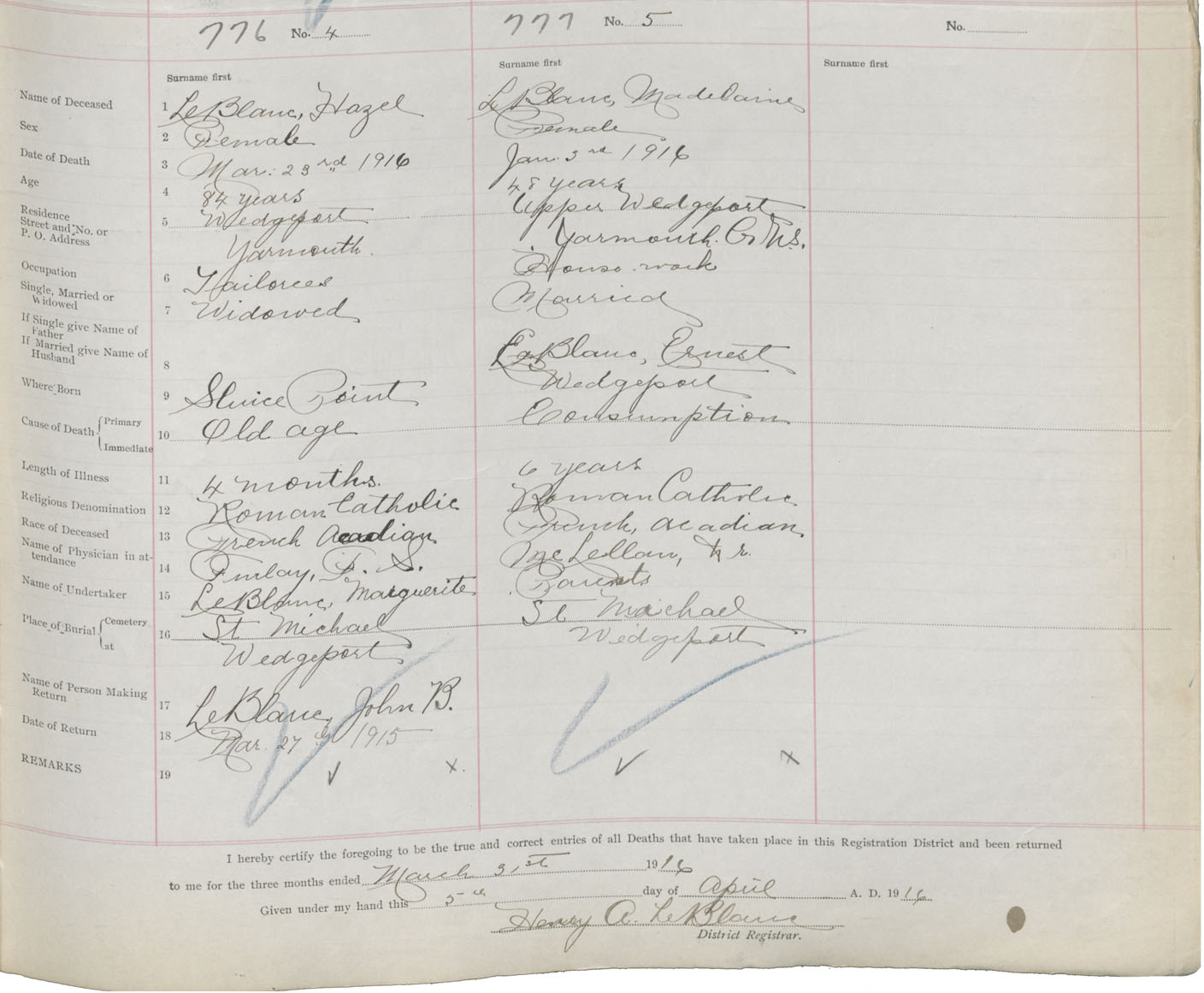 Death Registration: Year: 1916 book: 50 page: 239 number: 777