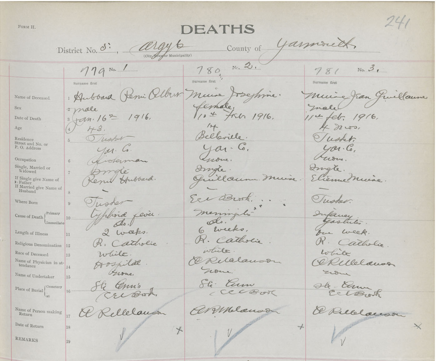Death Registration: Year: 1916 book: 50 page: 241 number: 781