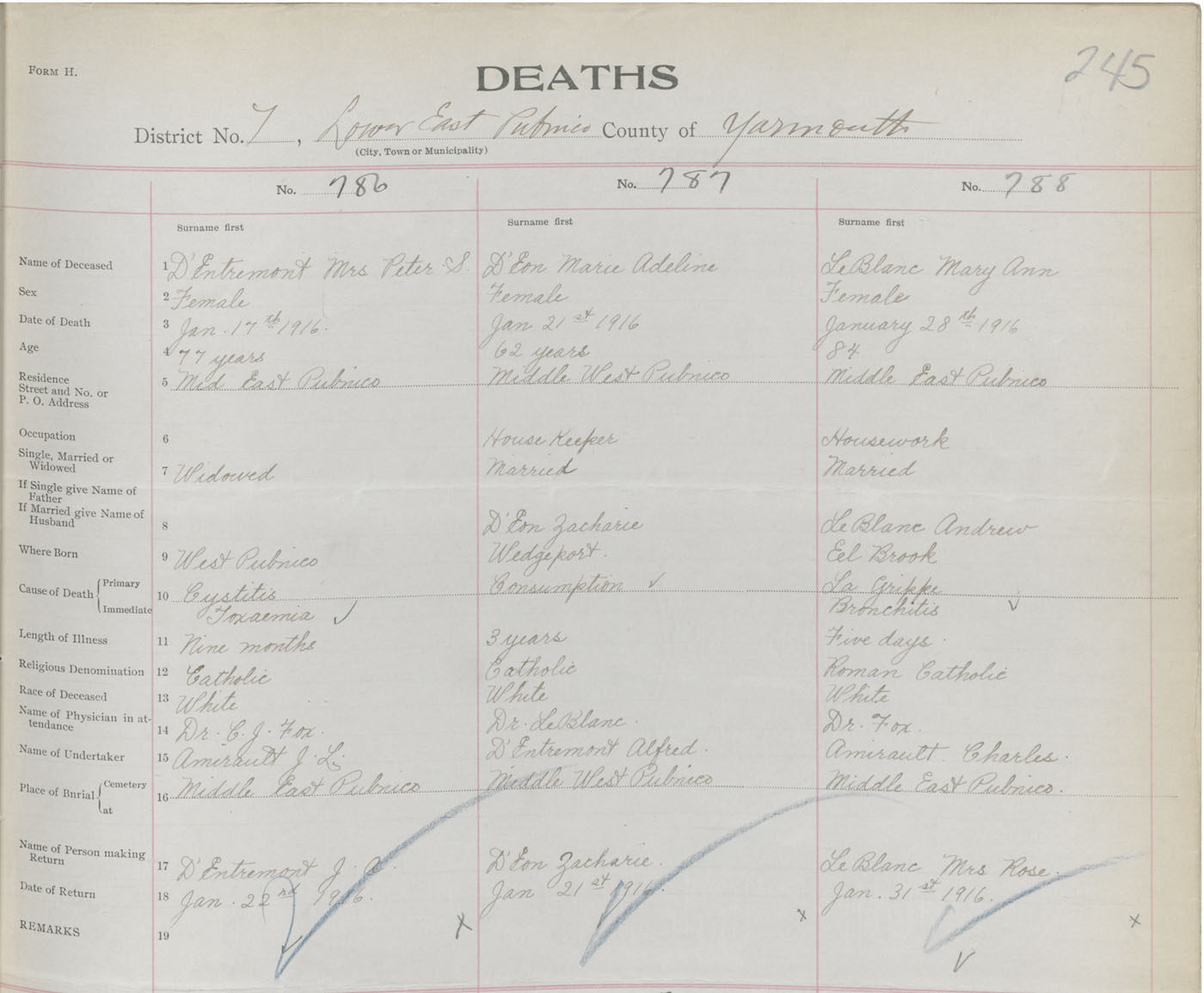 Death Registration: Year: 1916 book: 50 page: 245 number: 788