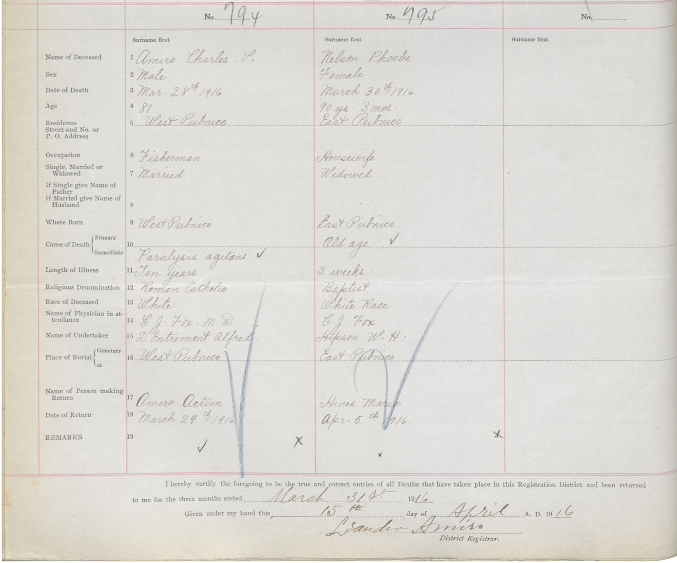Death Registration: Year: 1916 book: 50 page: 246 number: 795