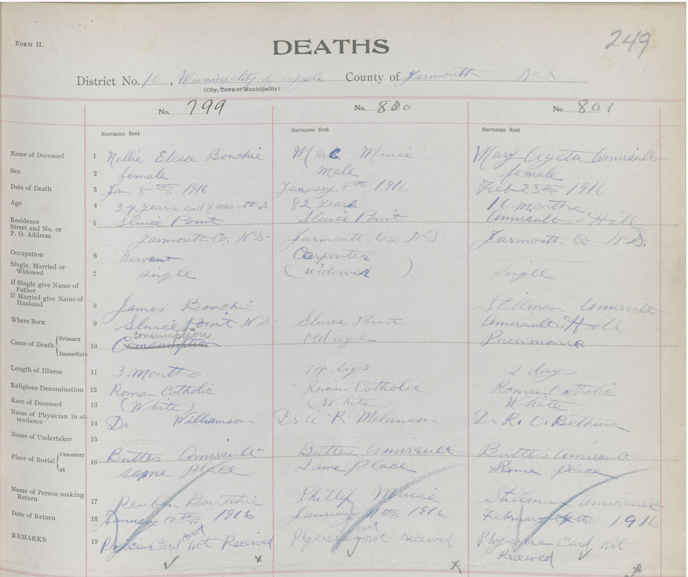 Death Registration: Year: 1916 book: 50 page: 249 number: 801