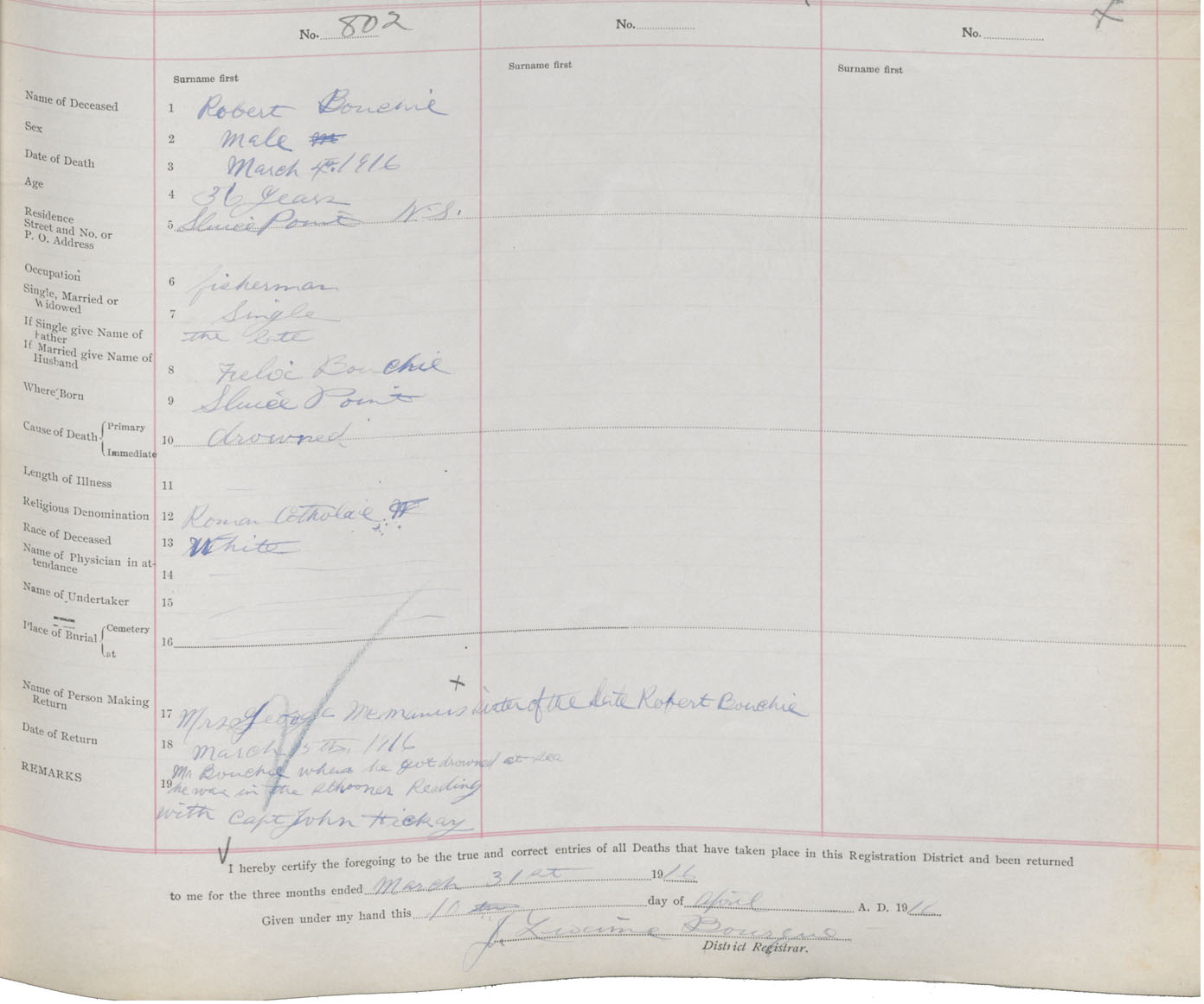 Death Registration: Year: 1916 book: 50 page: 249 number: 802