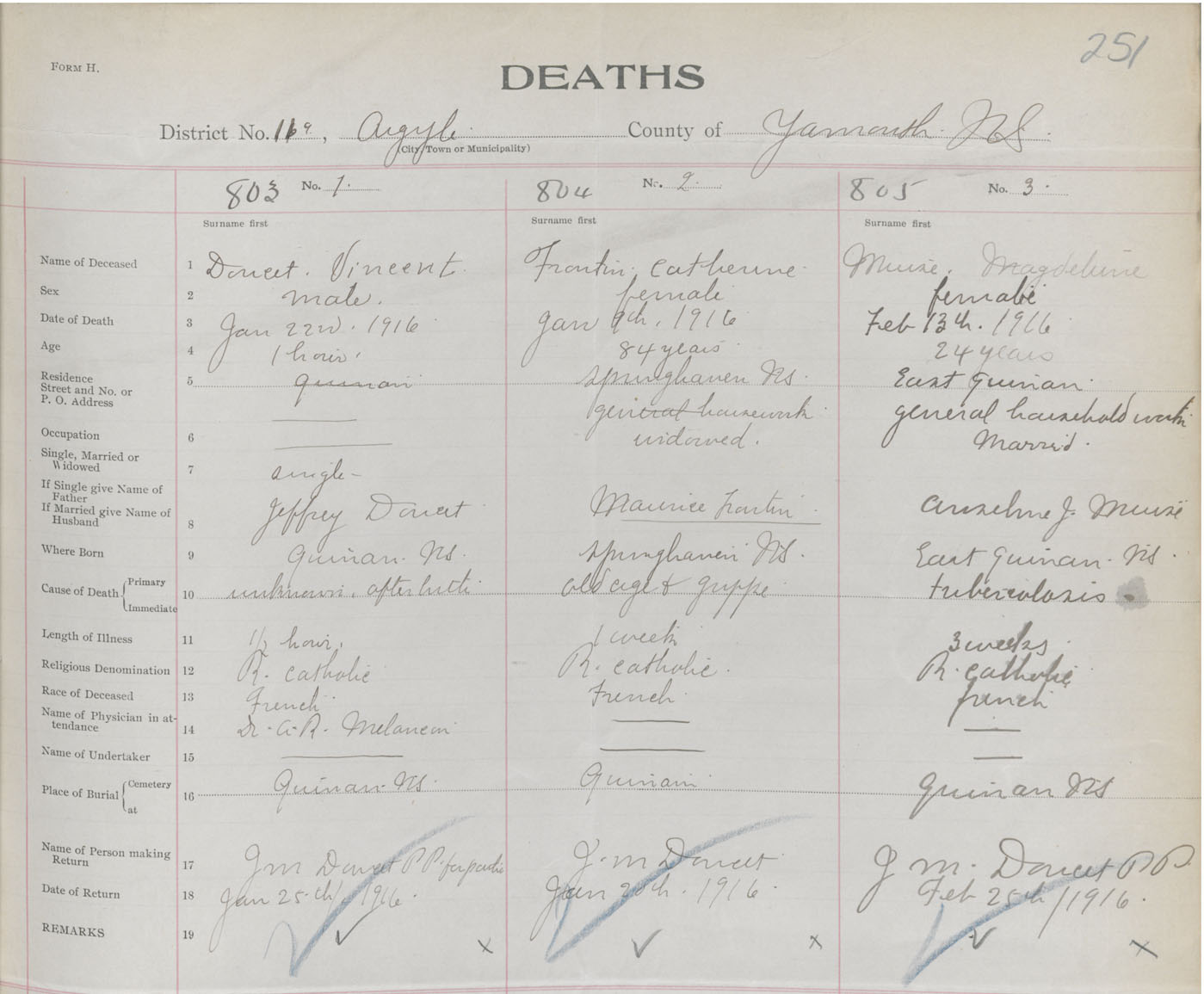 Death Registration: Year: 1916 book: 50 page: 251 number: 805