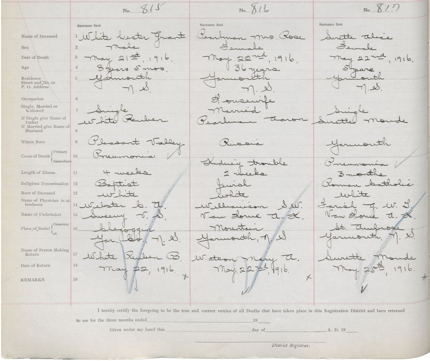 Death Registration: Year: 1916 book: 50 page: 254 number: 817