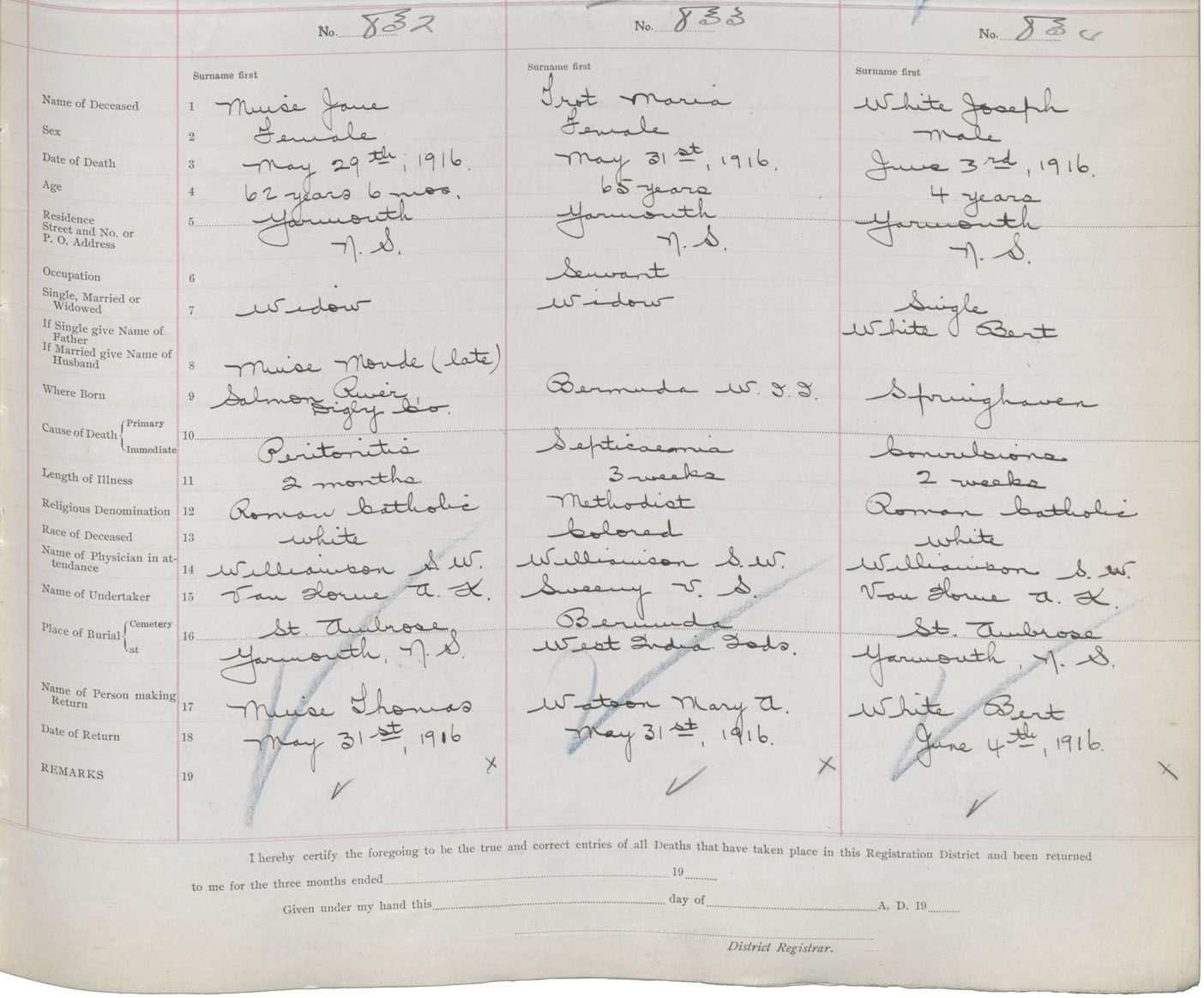 Death Registration: Year: 1916 book: 50 page: 257 number: 834