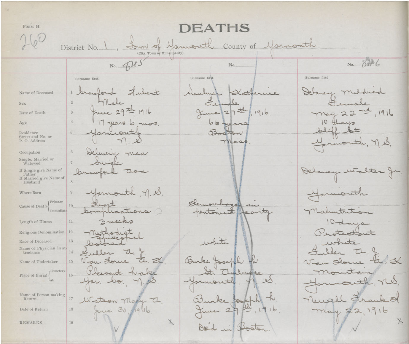 Female Death Registration: Year: 1916 book: 50 page: 260 number: 846