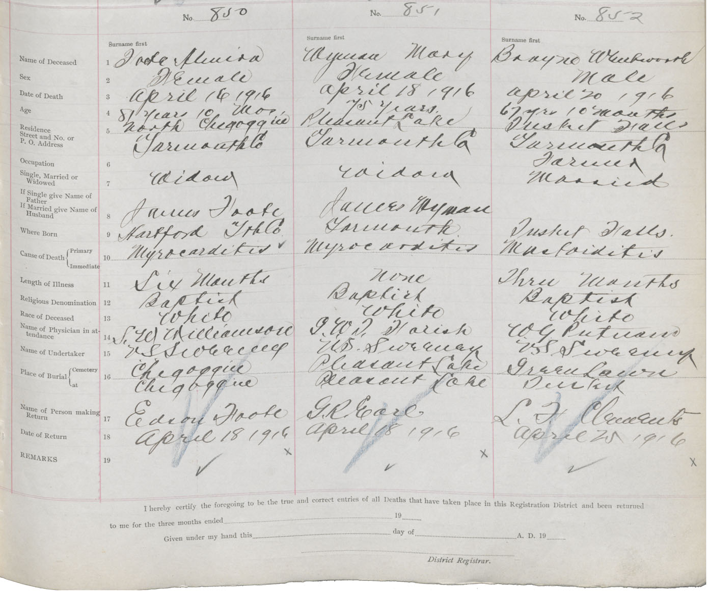 Death Registration: Year: 1916 book: 50 page: 261 number: 852