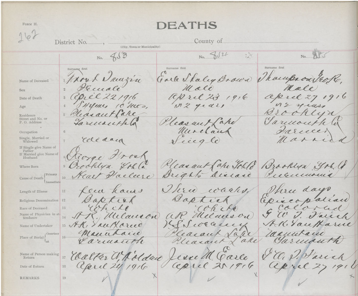 Death Registration: Year: 1916 book: 50 page: 262 number: 855