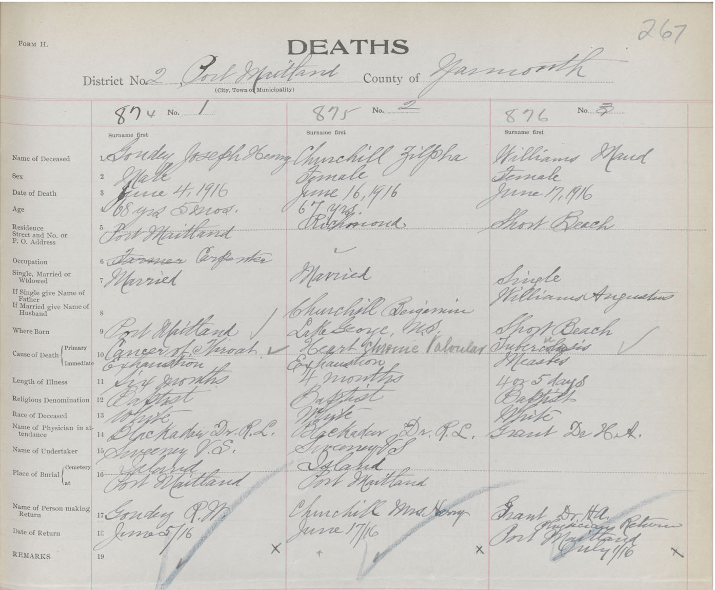 Death Registration: Year: 1916 book: 50 page: 267 number: 874