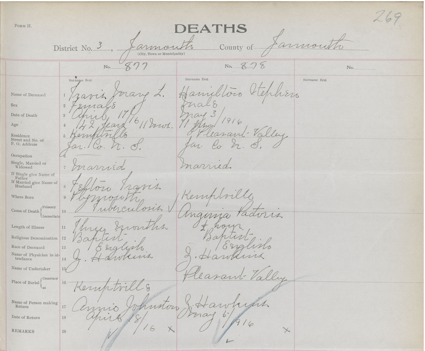 Death Registration: Year: 1916 book: 50 page: 269 number: 877