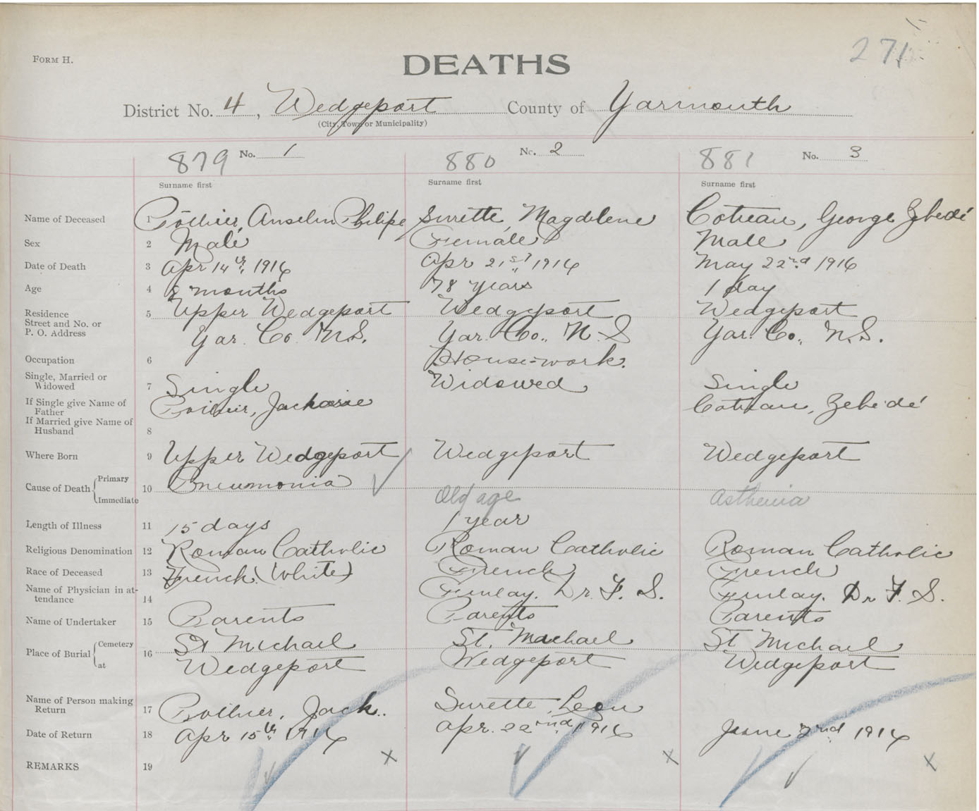 Death Registration: Year: 1916 book: 50 page: 271 number: 879