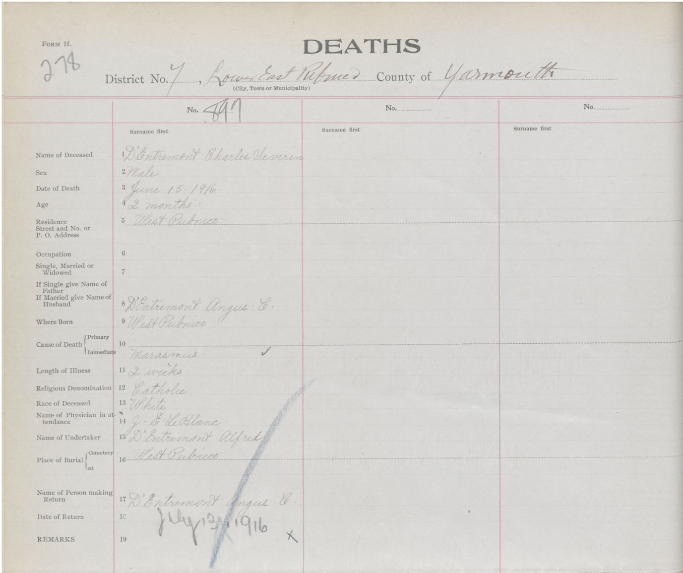 Death Registration: Year: 1916 book: 50 page: 278 number: 897