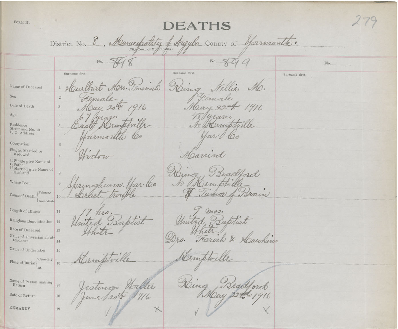 Death Registration: Year: 1916 book: 50 page: 279 number: 898