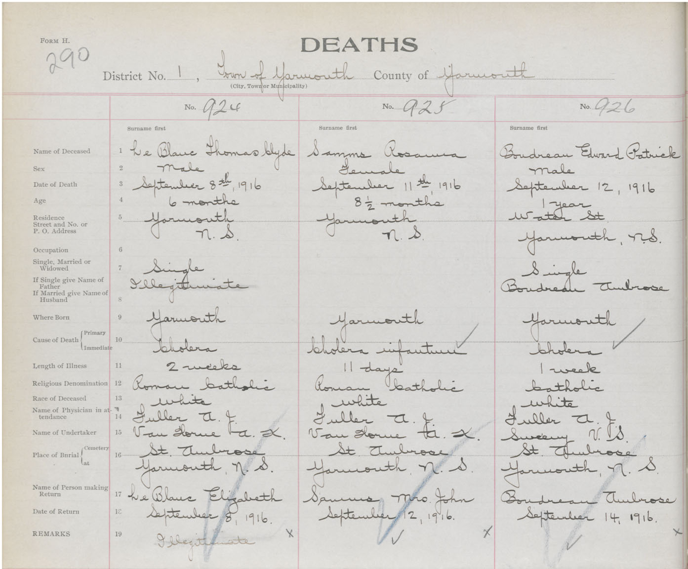 Death Registration: Year: 1916 book: 50 page: 290 number: 924