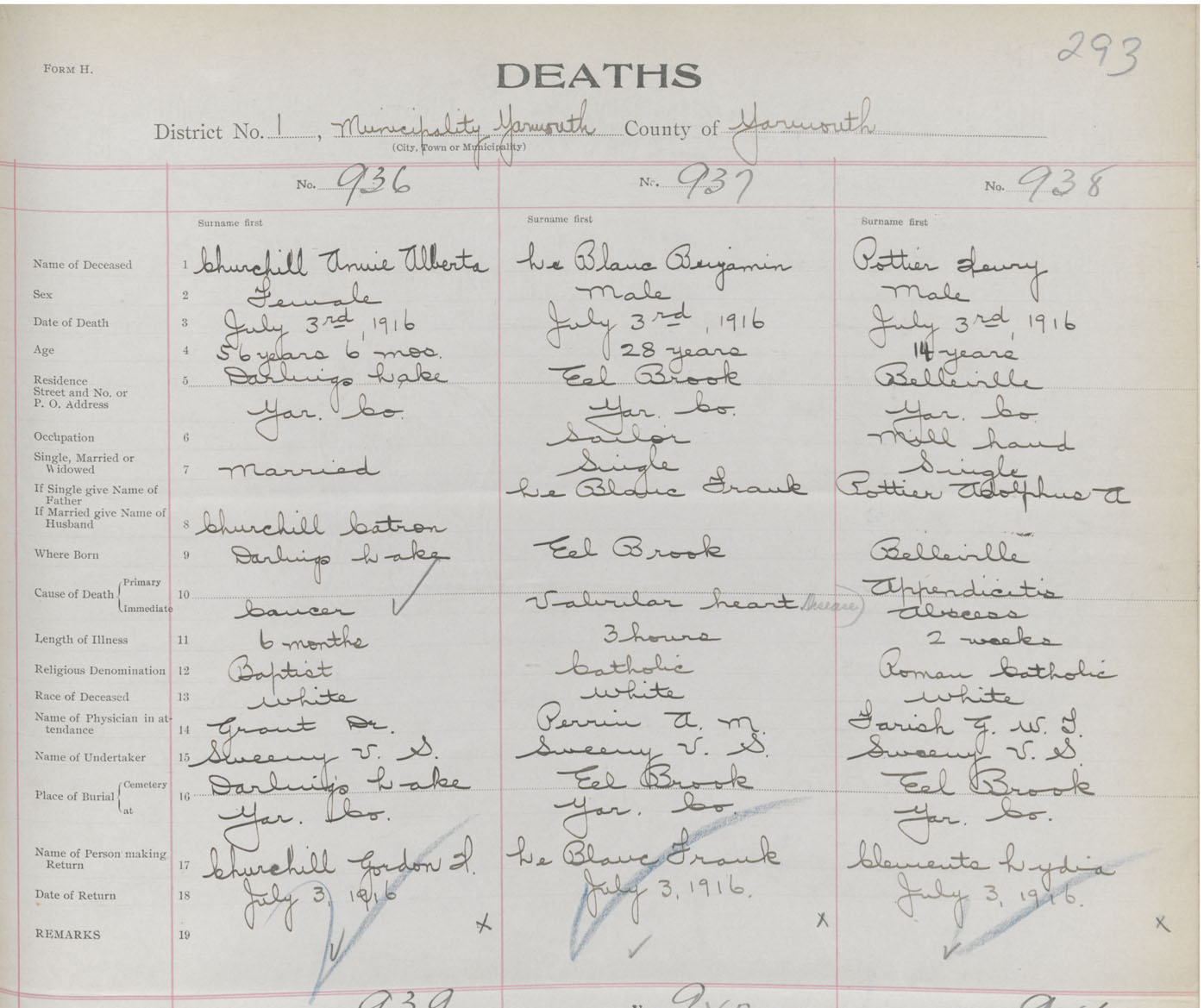 Death Registration: Year: 1916 book: 50 page: 293 number: 936