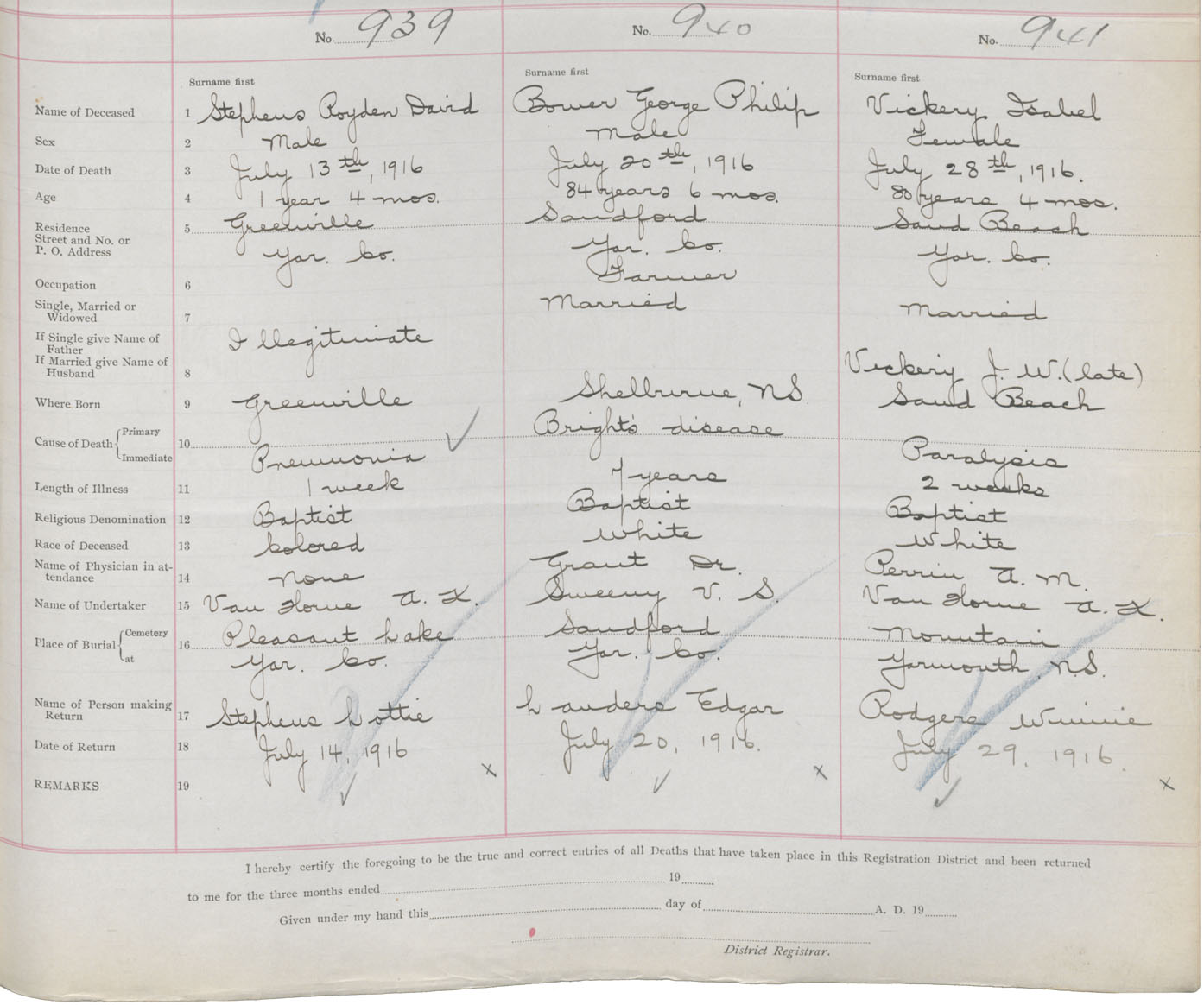 Death Registration: Year: 1916 book: 50 page: 293 number: 939
