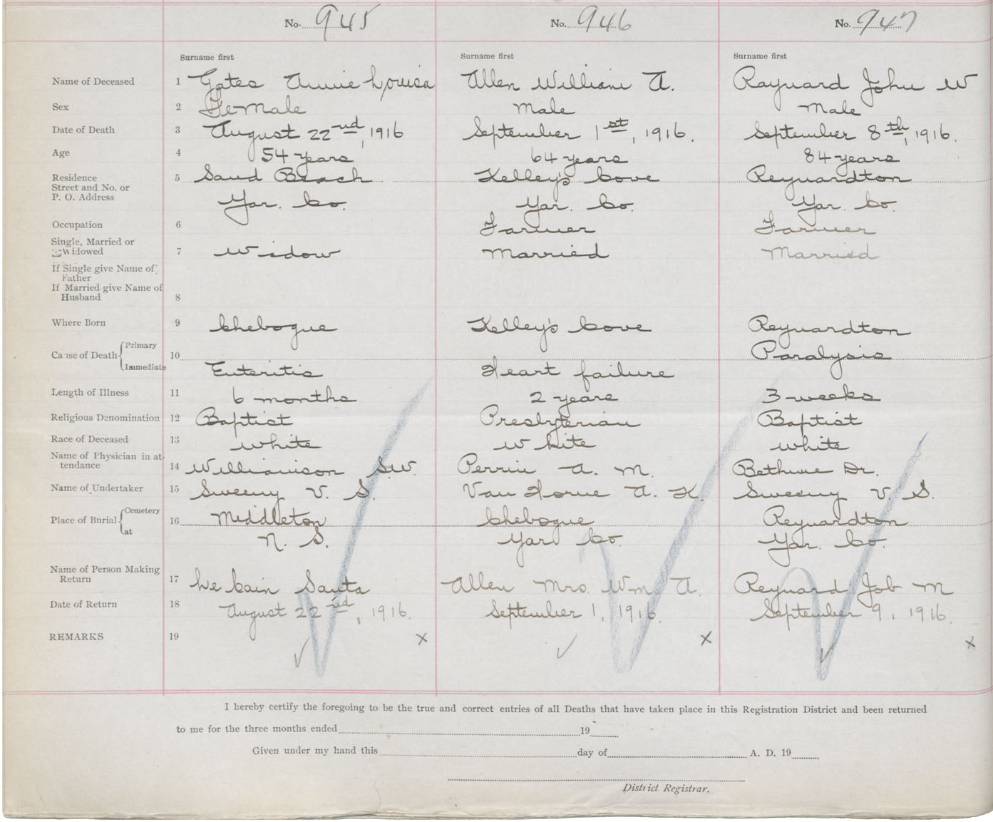 Death Registration: Year: 1916 book: 50 page: 294 number: 945