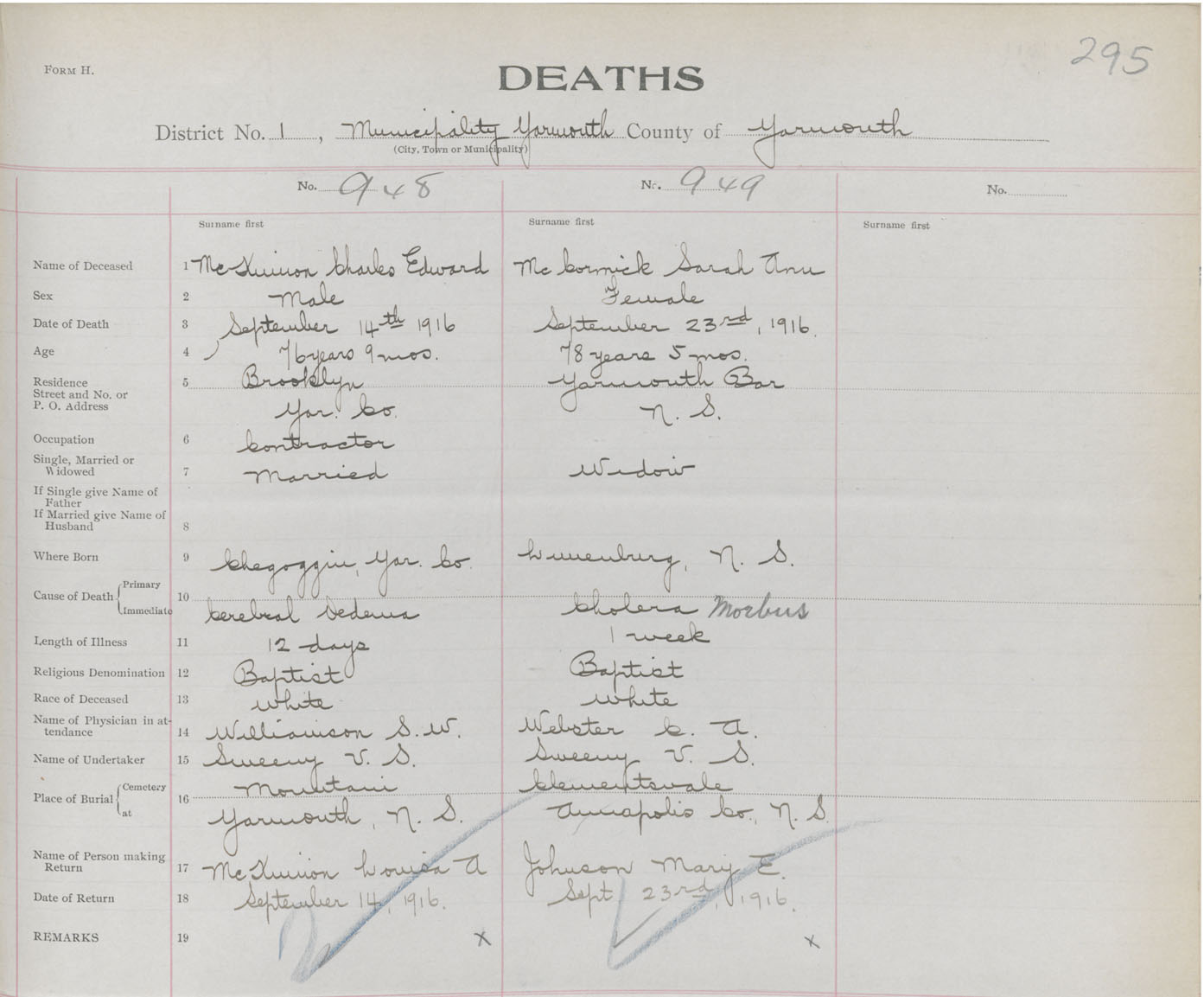 Death Registration: Year: 1916 book: 50 page: 295 number: 948