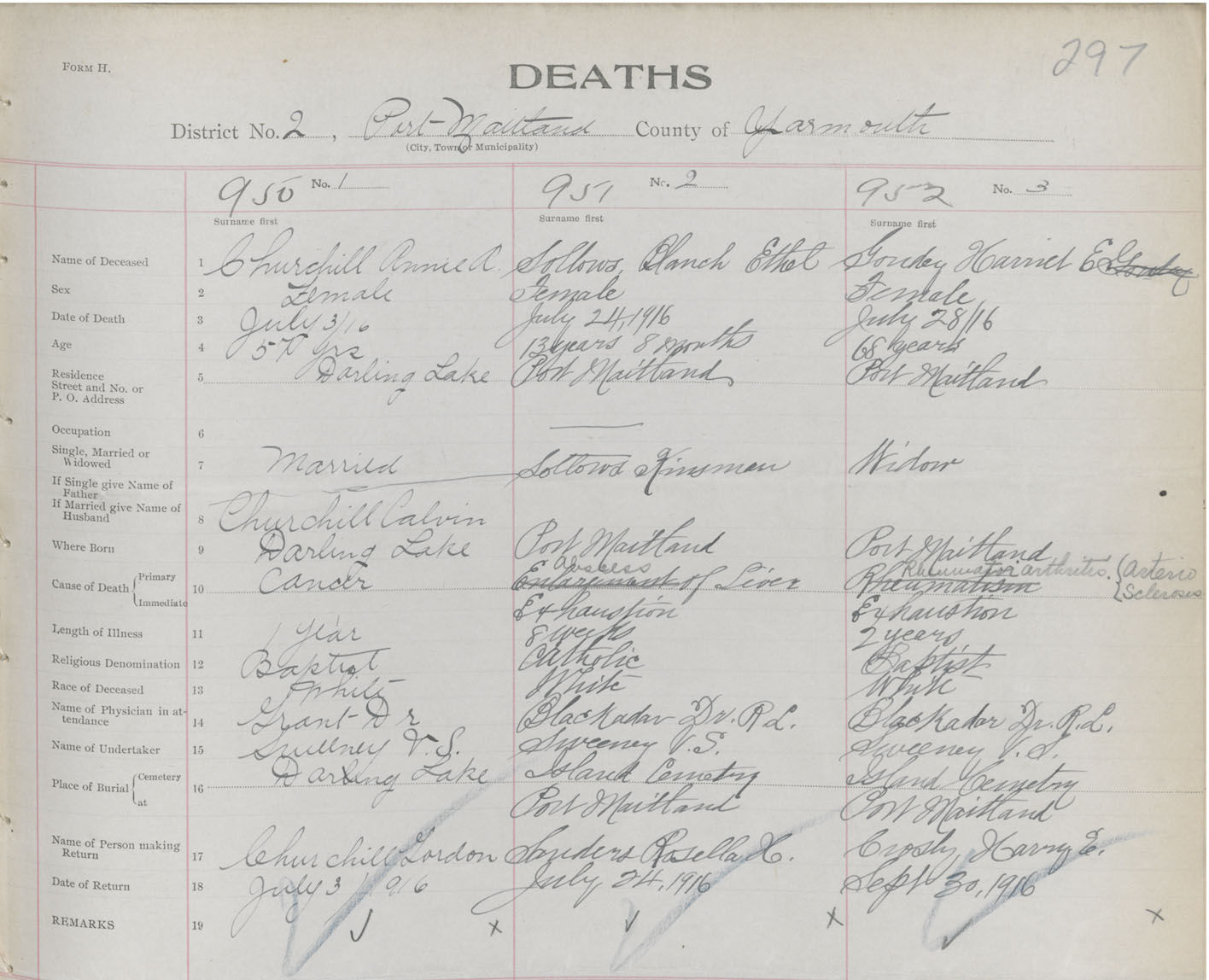 Death Registration: Year: 1916 book: 50 page: 297 number: 950