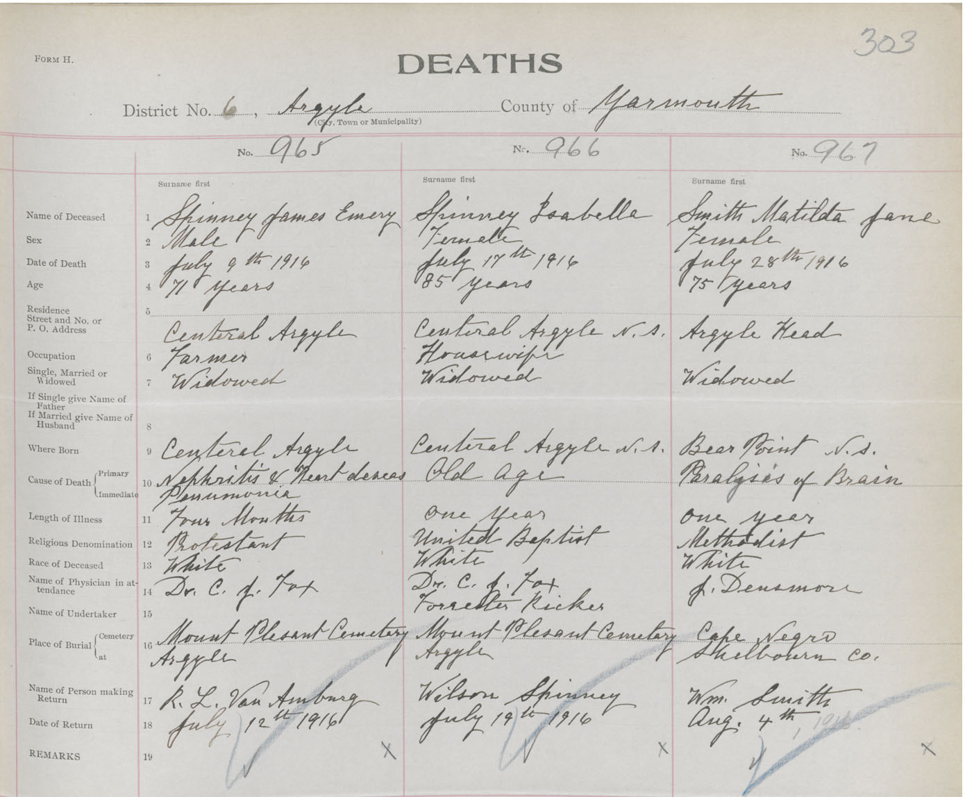 Death Registration: Year: 1916 book: 50 page: 303 number: 965