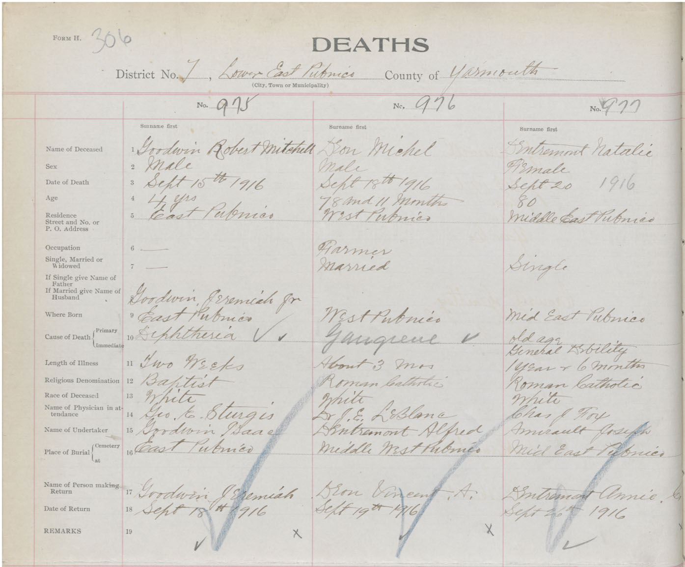 Death Registration: Year: 1916 book: 50 page: 306 number: 975
