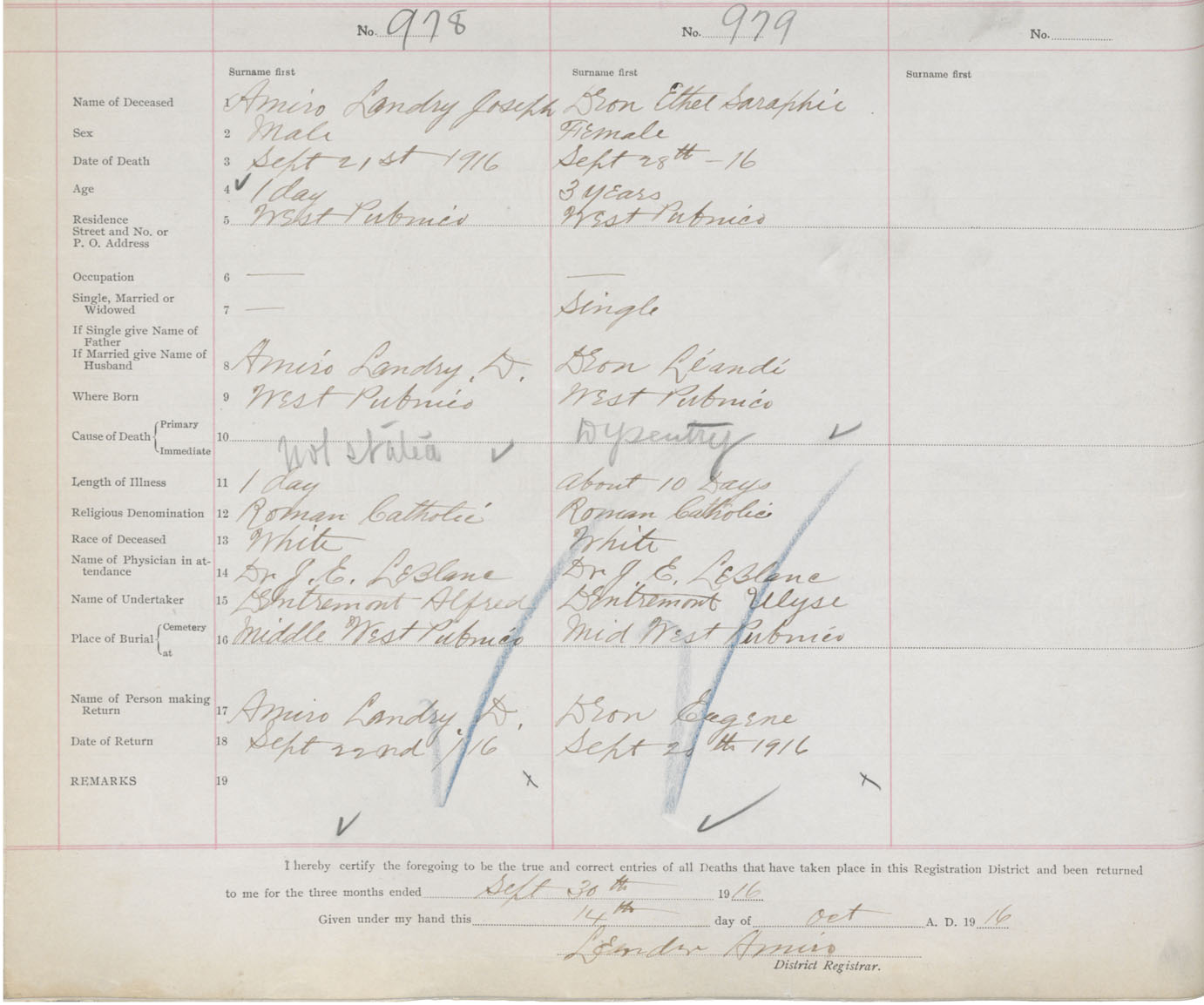 Death Registration: Year: 1916 book: 50 page: 306 number: 978