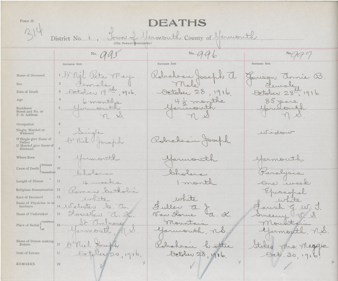 Death Registration: Year: 1916 book: 50 page: 314 number: 995