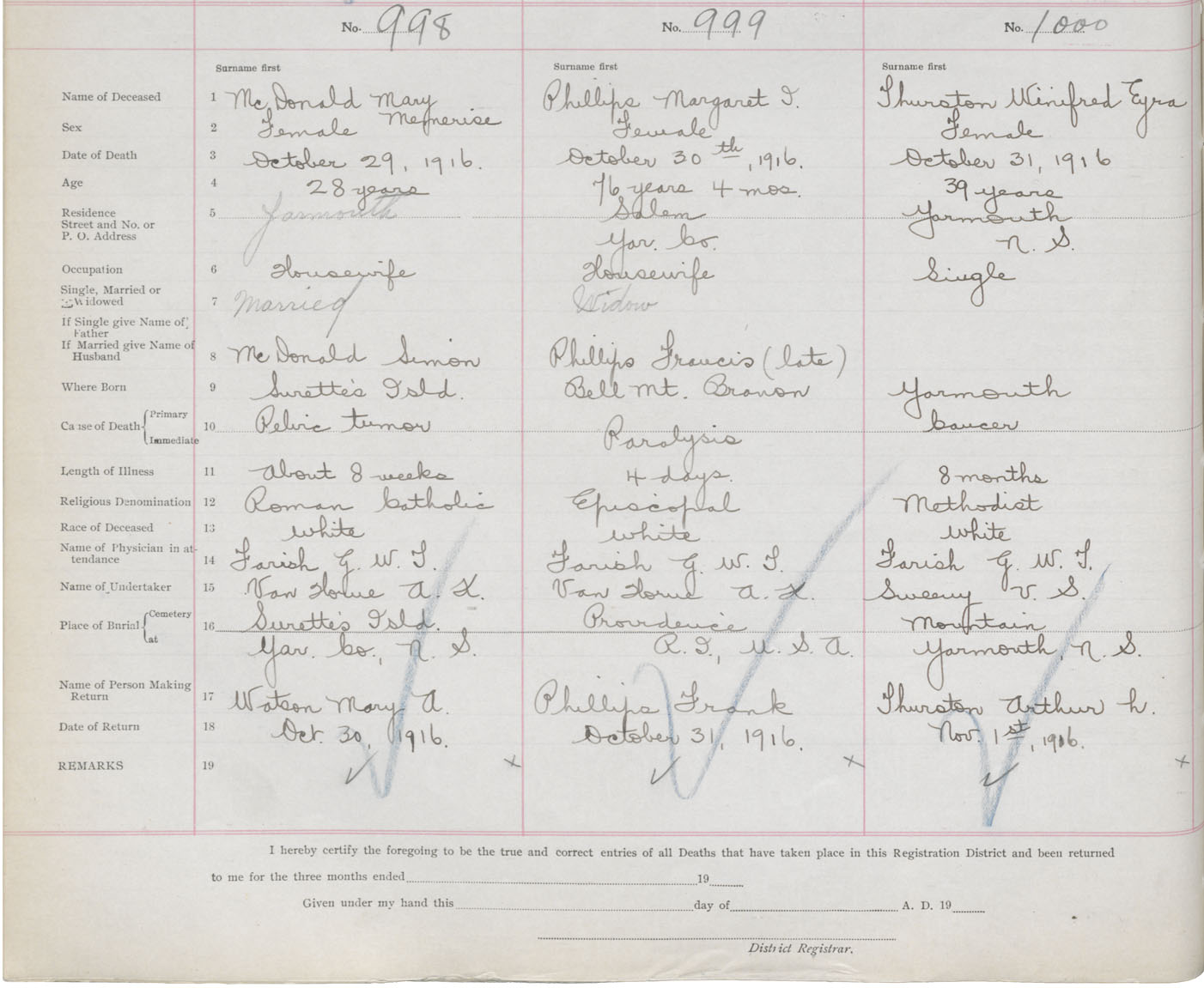 Death Registration: Year: 1916 book: 50 page: 314 number: 998