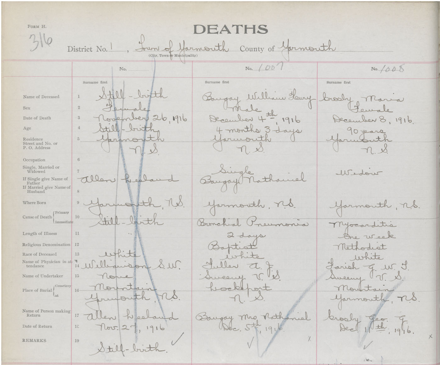 Death Registration: Year: 1916 book: 50 page: 316 number: 1007