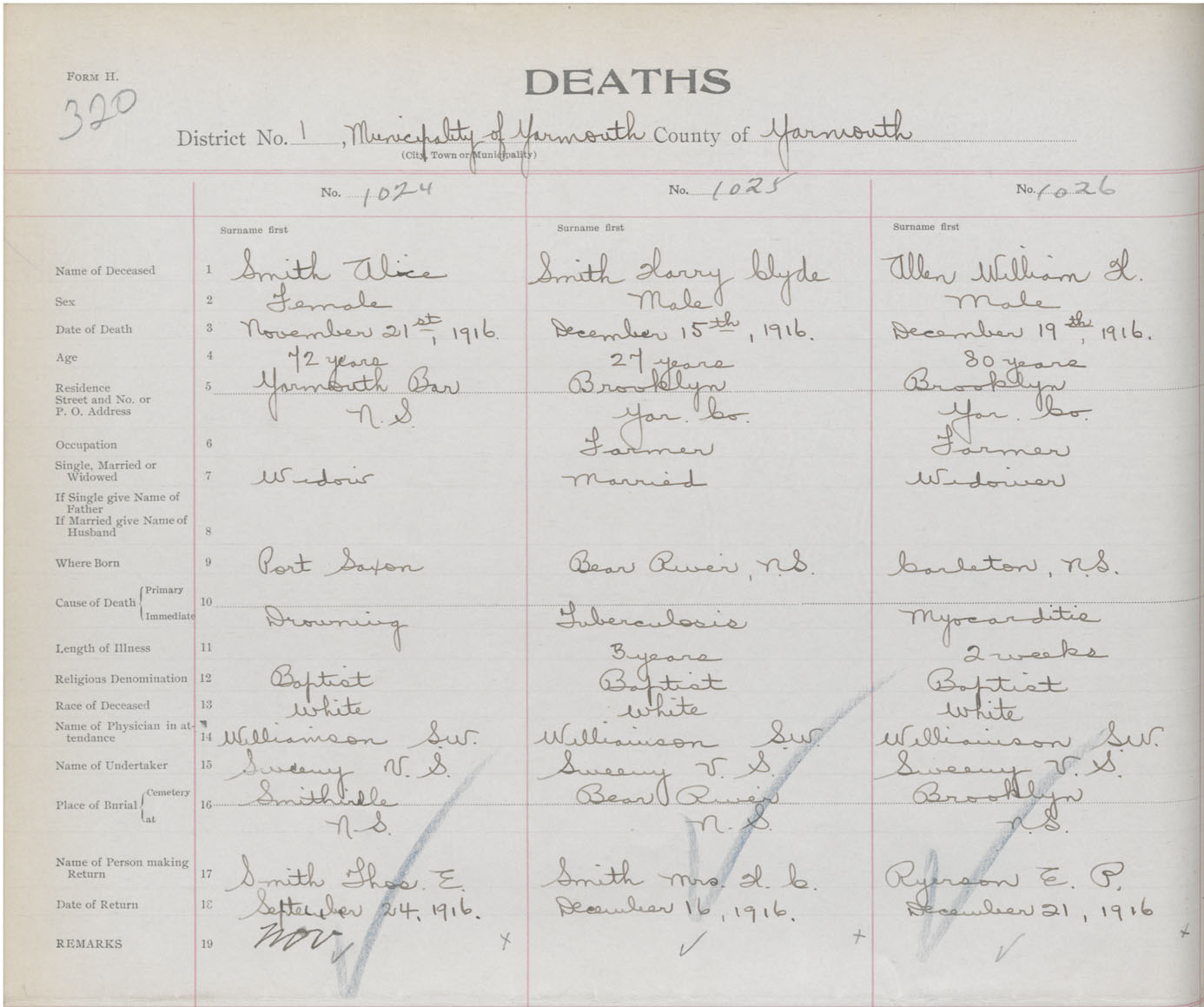 Death Registration: Year: 1916 book: 50 page: 320 number: 1024