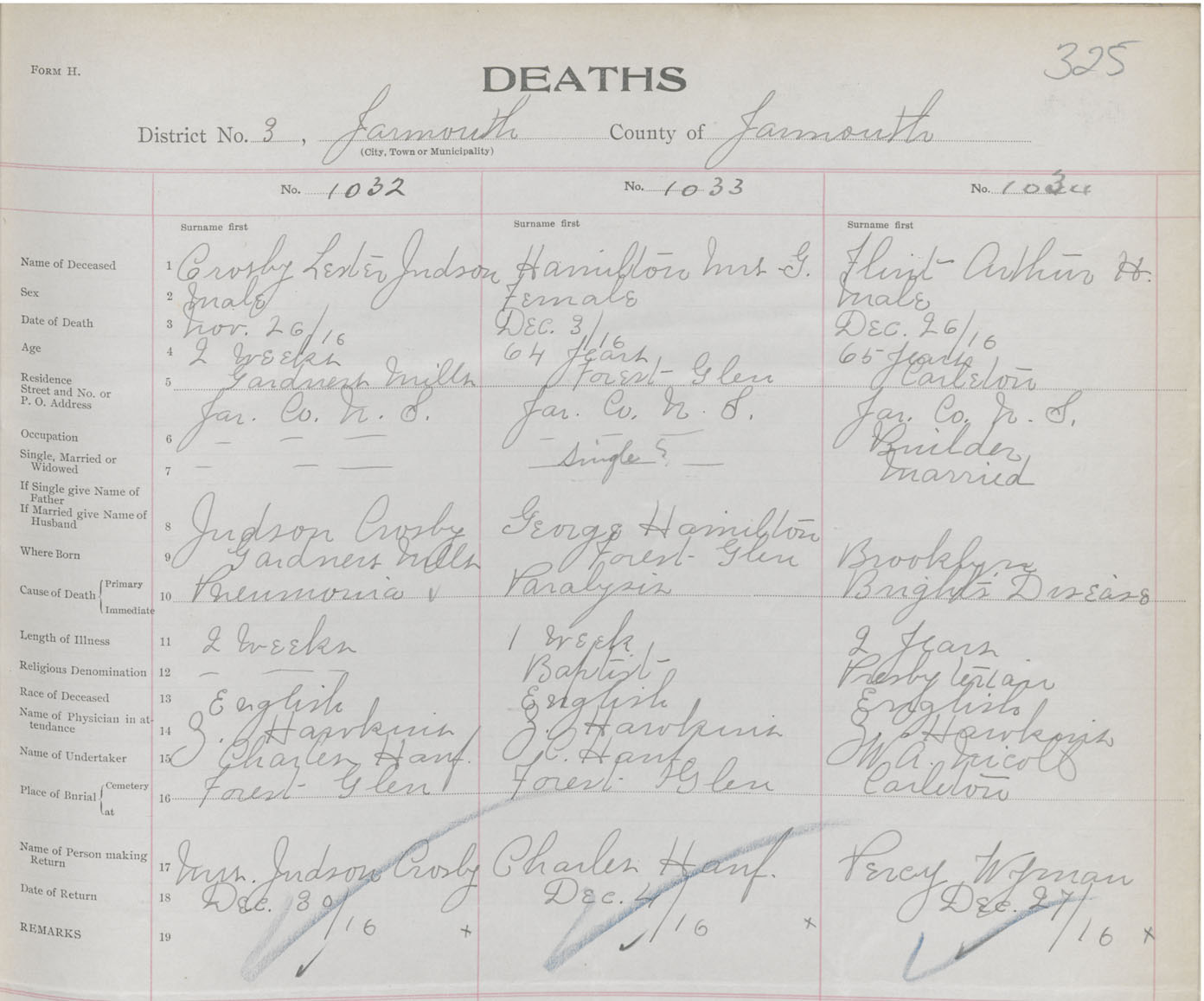 Death Registration: Year: 1916 book: 50 page: 325 number: 1032