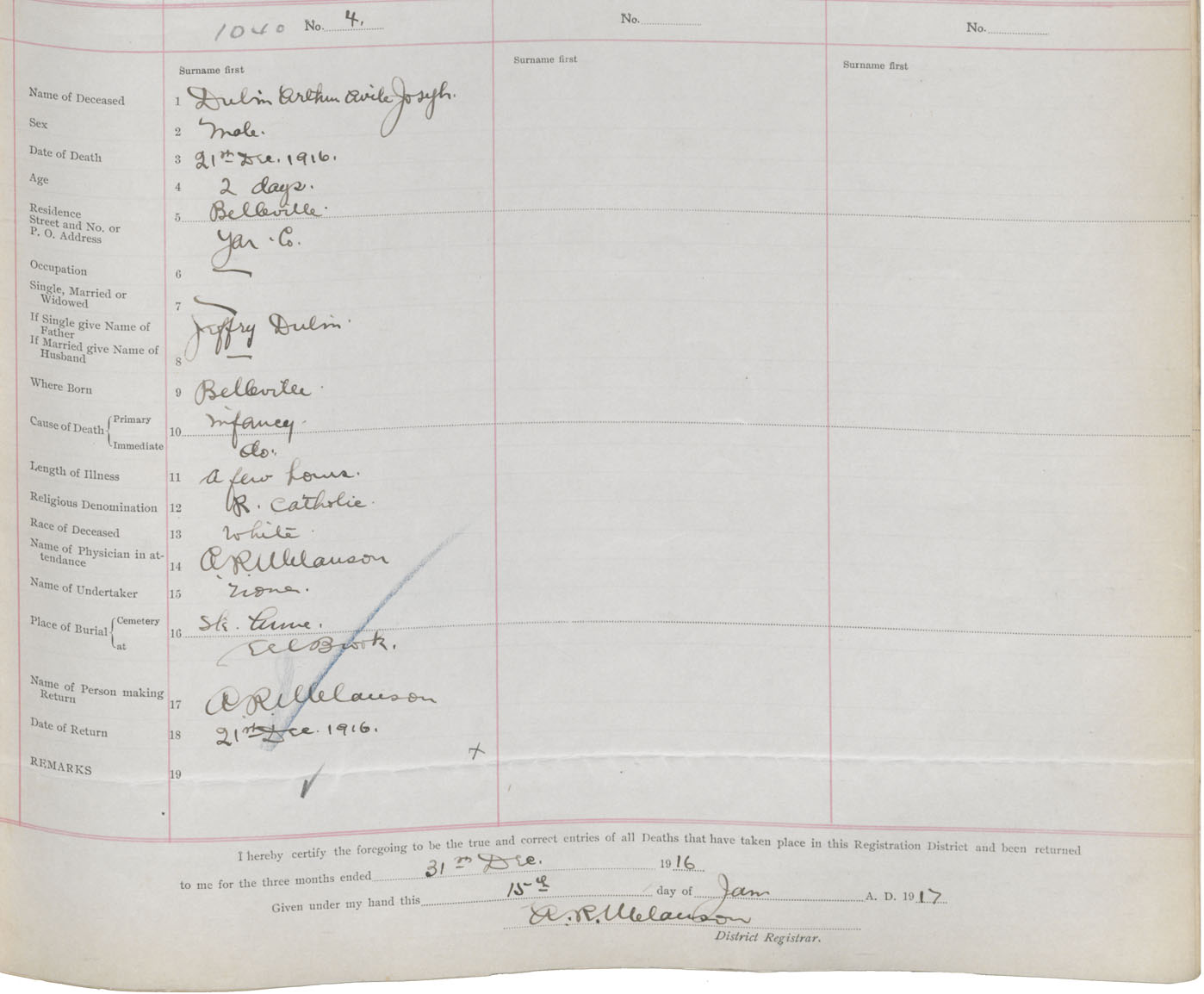 Death Registration: Year: 1916 book: 50 page: 329 number: 1040